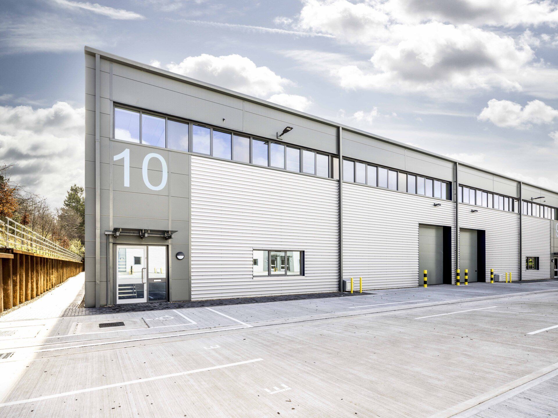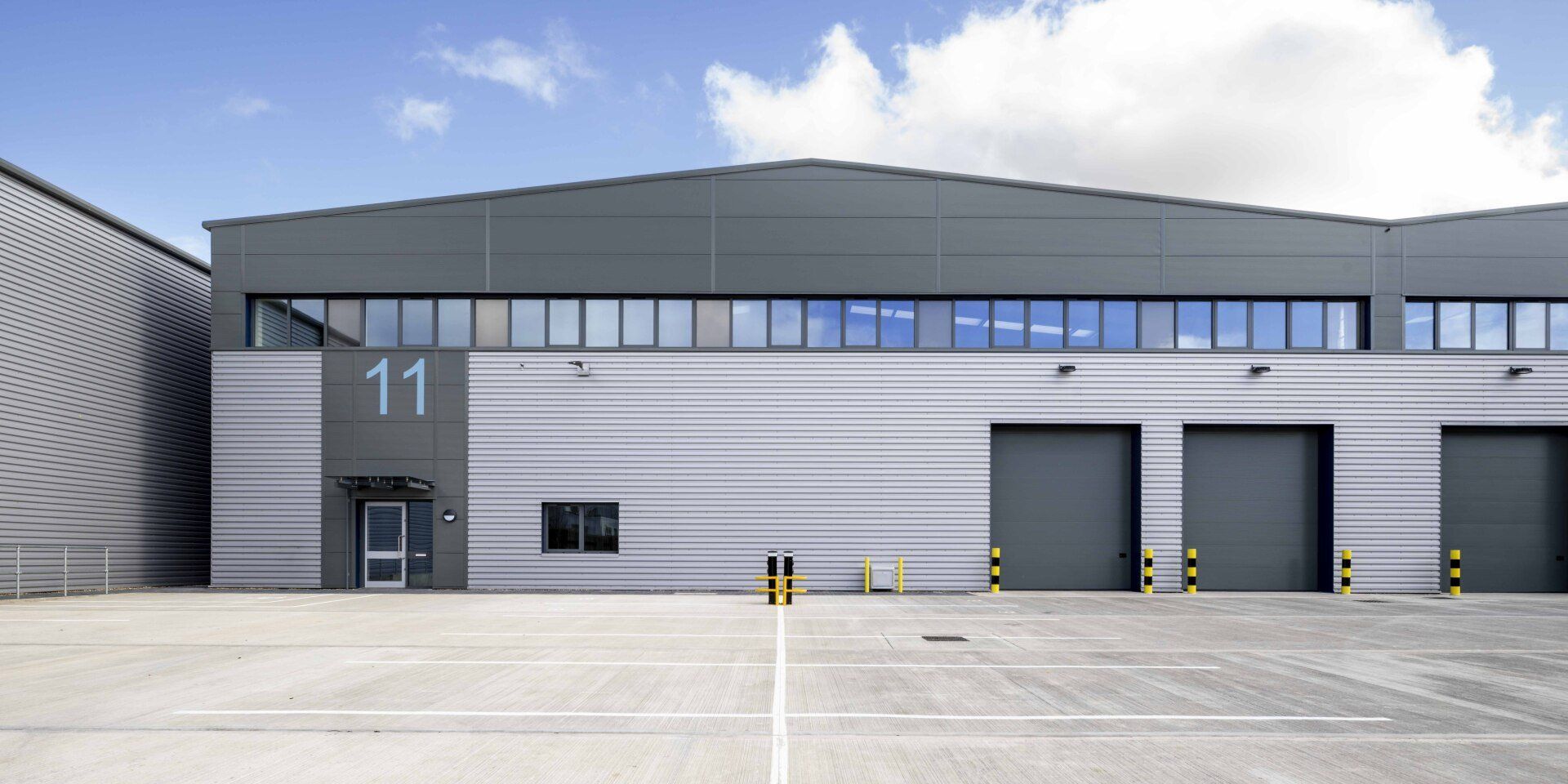 The buildings them selves are constructed with steel frames and a mixture of built up and composite cladding. The external works consist of concrete HGV yards and parking along with block paved paths.
