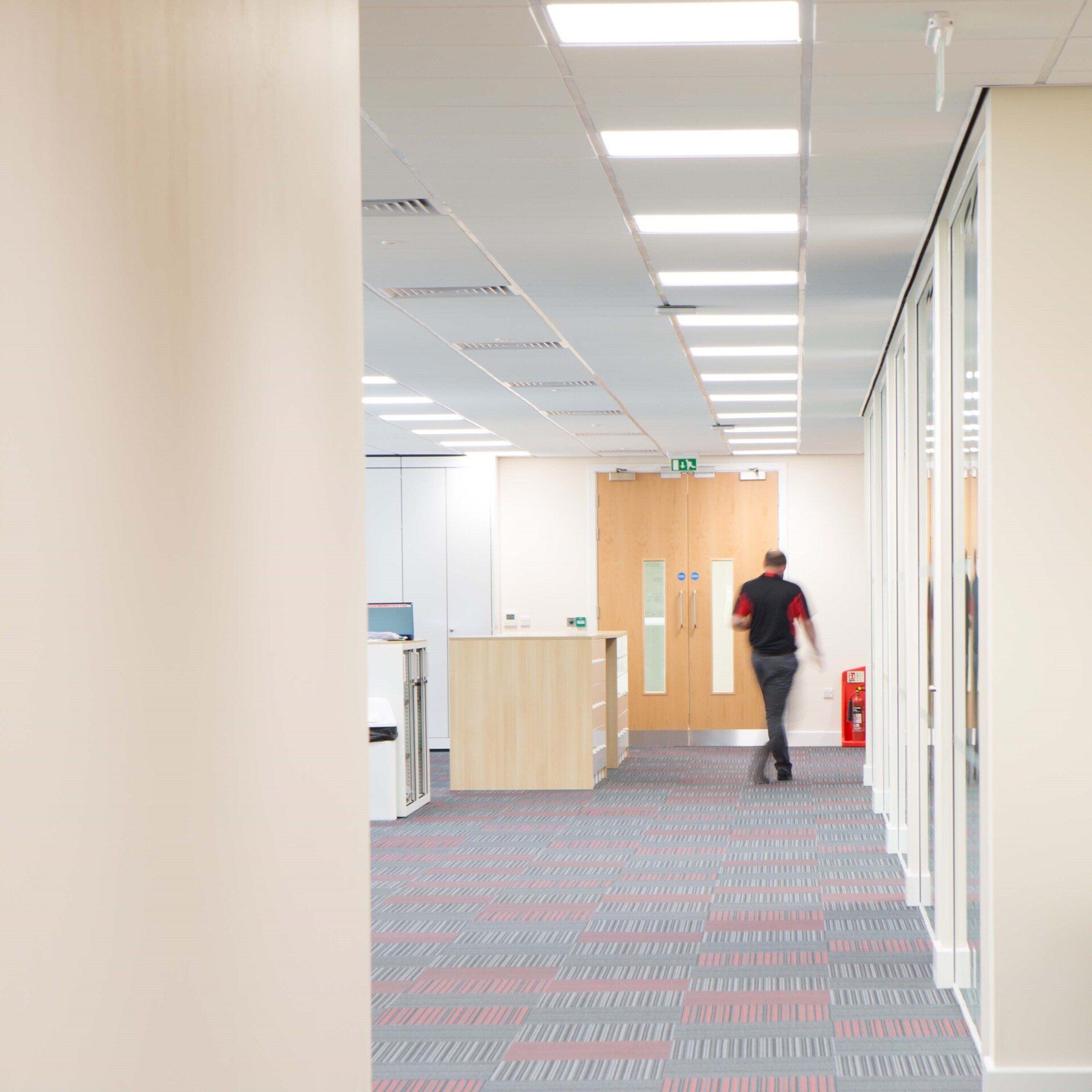 This project involved the complete refurbishment of a two storey office block, the construction of a new reception and atrium along with the complete reconfiguration of the pre-existing car parking area. Works included the complete strip out of all of the internal finishes, ceilings, carpets, partitioning, electrical installation, air conditioning, ventilation, toilets, external areas and Asbestos.